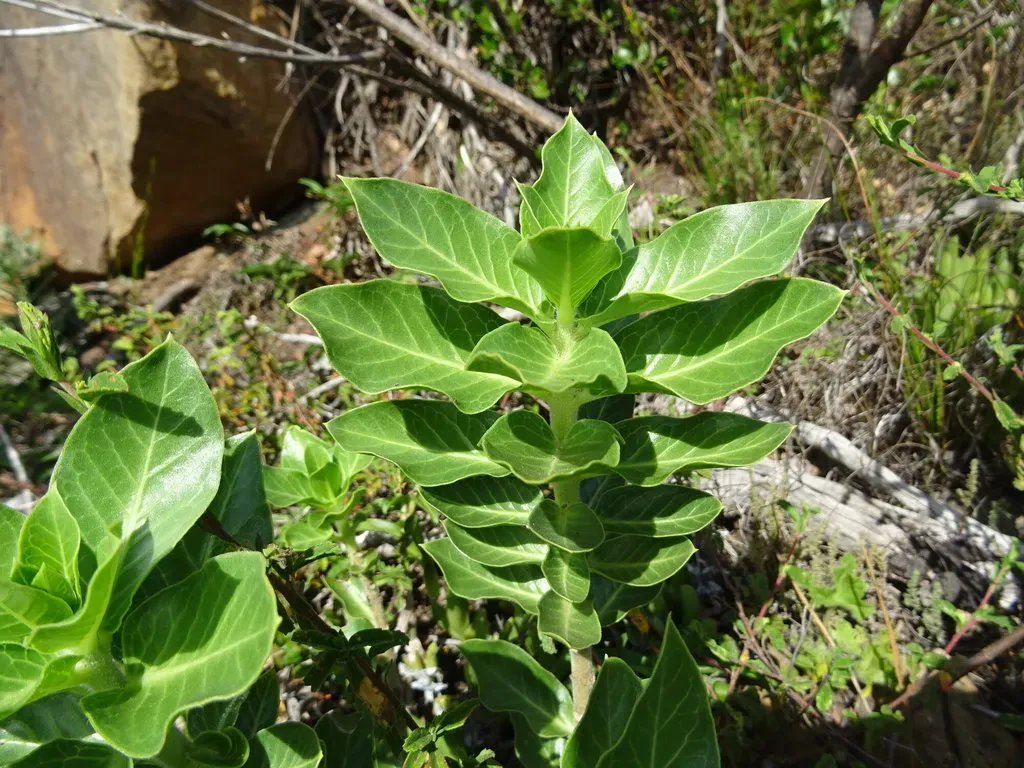 Gomphocarpus cancellatus is a perennial herb or shrublet known for its broad leaves and white to purple flowers, commonly found in dry rocky slopes and subtropical climates.