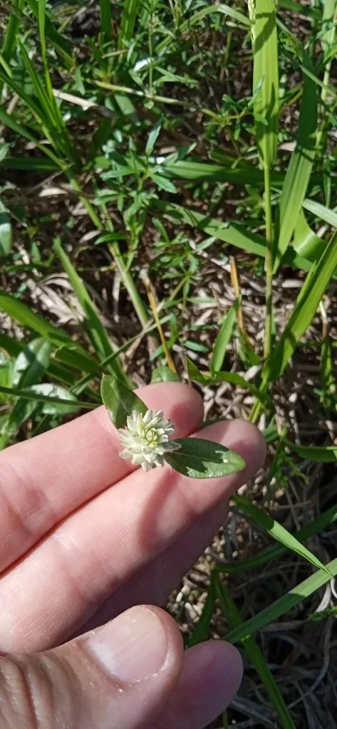 Gomphrena celosioides is a prostrate, perennial herbaceous plant belonging to the Amaranthaceae family, commonly found in disturbed areas worldwide.