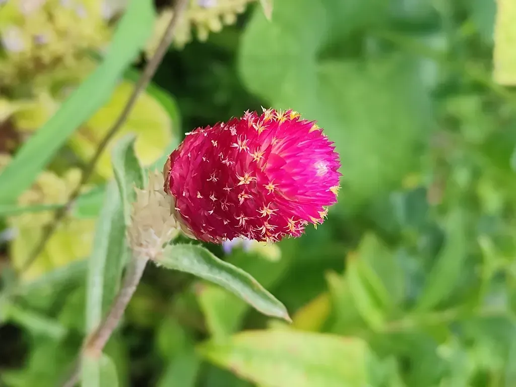 Gomphrena globosa is a compact, annual flowering plant known for its brightly colored, globe-shaped flower heads that are often used in dried flower arrangements.