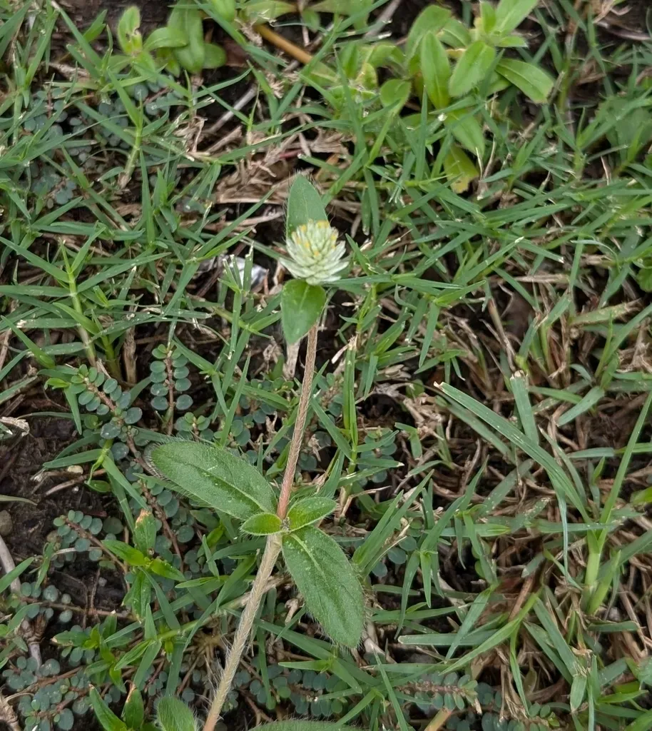 Gomphrena serrata is an annual or short-lived perennial herbaceous plant known for its mat-forming habit and oblong to ovate dark green leaves.