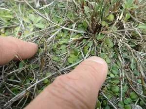 Goodenia heenanii is a rhizomatous, mat-forming herb endemic to New Zealand, known for forming dense patches and trailing through vegetation.