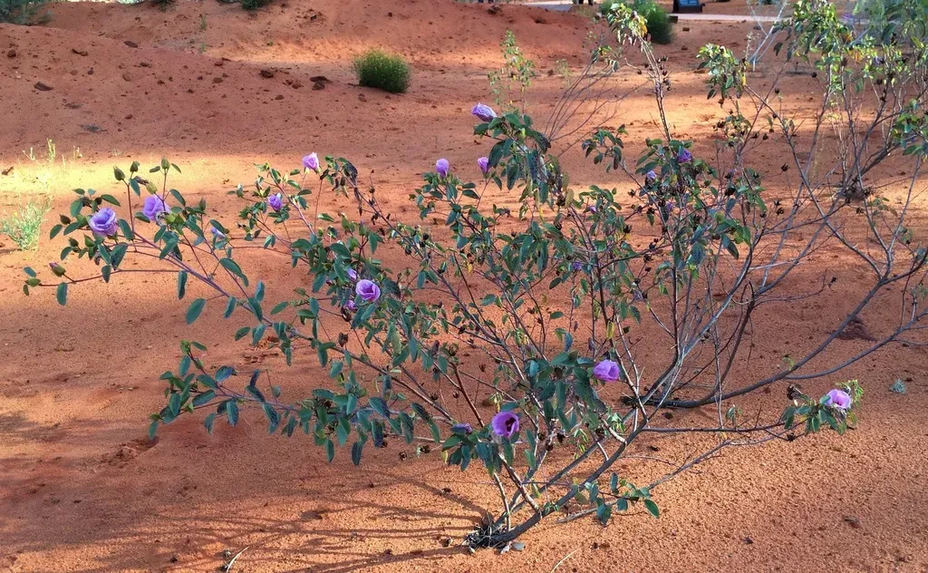 Sturt's Desert Rose (Gossypium Sturtianum) is a plant in the Malvaceae family with moderate care difficulty. It requires moderate watering and moderate light.