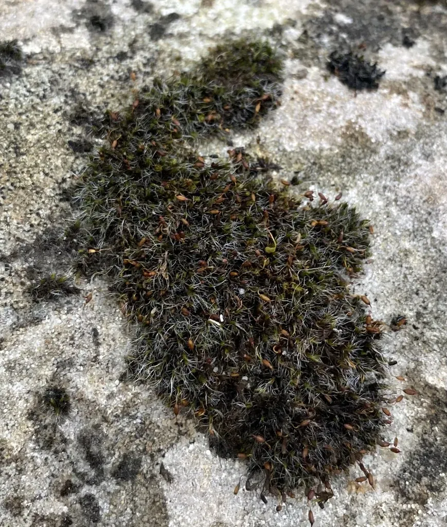 Grey-cushioned Grimmia (Grimmia Pulvinata) is a perennial moss in the Grimmiaceae family with easy care difficulty. It requires moderate watering and partial shade or full shade or dappled_shade light in USDA hardiness zones 3-8. This plant is safe for cats and dogs.