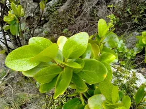 Griselinia lucida is an epiphytic or terrestrial shrub or small tree native to New Zealand with glossy, dark green leaves and distinctive fluted roots.