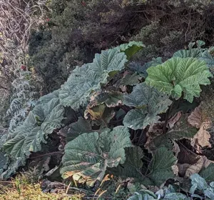 Giant Gunnera (Gunnera Insignis) is a perennial herb in the Gunneraceae family with moderate care difficulty. It requires high watering and partial shade or dappled_shade light in USDA hardiness zones 10-12. This plant is safe for cats and dogs.