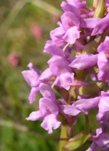 Heath Fragrant-orchid (Gymnadenia Borealis) is a plant in the Orchidaceae family with moderate care difficulty. It requires moderate watering and moderate light.