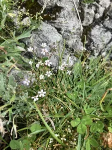 A low-growing perennial plant with delicate flowers, commonly used as groundcover or edging in gardens.