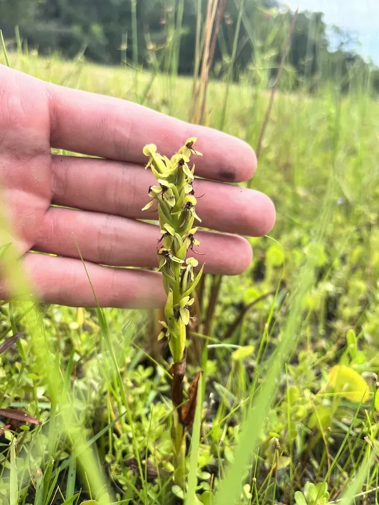 A semi-aquatic orchid known for its floating habit and greenish-white flowers, native to the Americas.