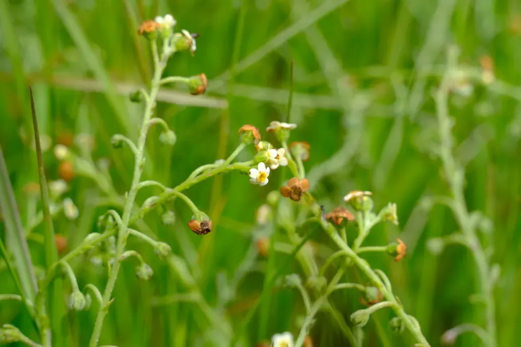 Sweet Hound's-tongue (Hackelia Suaveolens) is a annual herb in the Boraginaceae family with moderate care difficulty. It requires moderate watering and full sun or partial shade light in USDA hardiness zones 9-11. This plant is safe for cats and dogs.