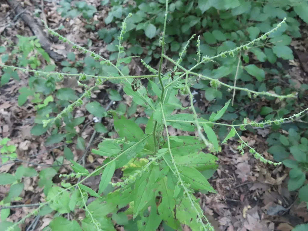 Virginia Stickseed (Hackelia Virginiana) is a biennial herb in the Boraginaceae family with easy care difficulty. It requires moderate watering and partial shade or full sun light in USDA hardiness zones 3-8. This plant is safe for cats and dogs.