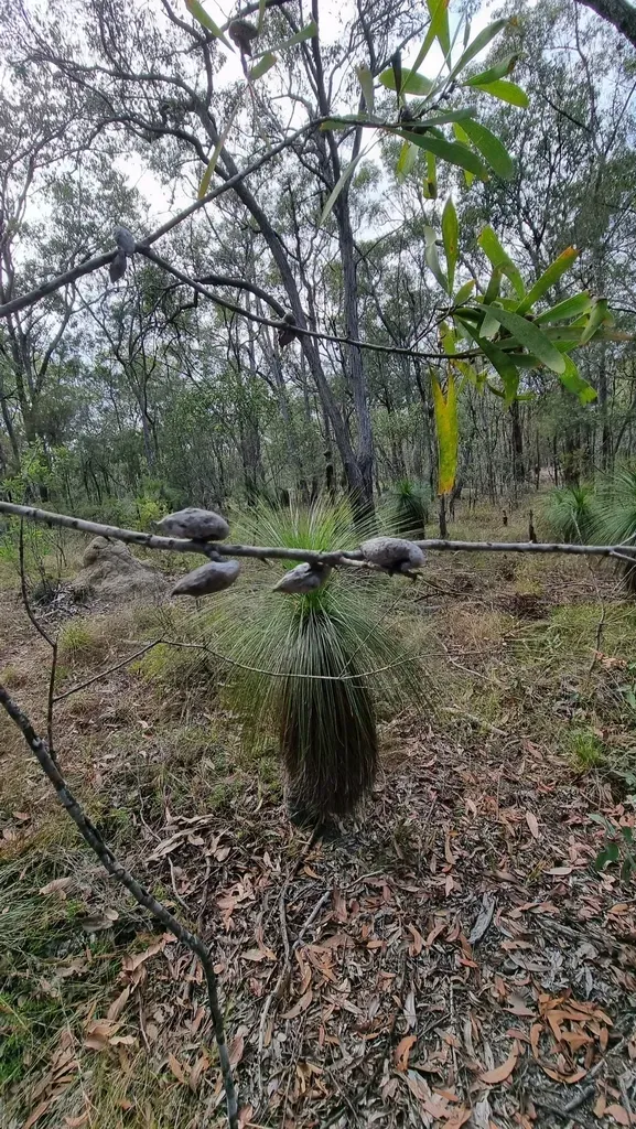 Hakea benthamii is a shrub native to eastern and central Queensland, Australia, known for its tough, leathery leaves and cream to pinkish-red flowers.