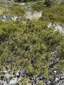 Mountain Pine (Halocarpus Bidwillii) is a perennial shrub/tree in the Podocarpaceae family with moderate care difficulty. It requires moderate watering and partial shade or full sun light in USDA hardiness zones 7-9. This plant is safe for cats and dogs.