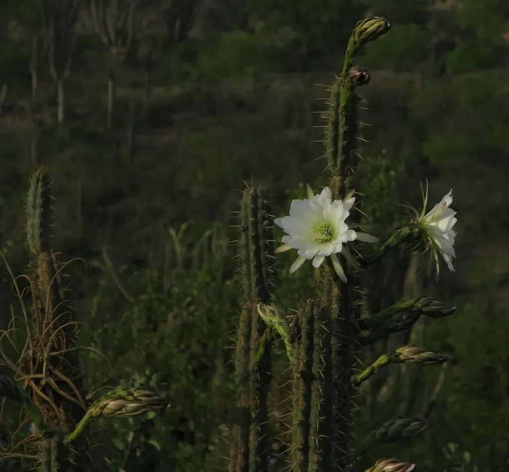 Harrisia tetracantha is a columnar cactus native to tropical and subtropical South America, known for its spiny stems and large nocturnal flowers.
