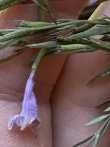 Hedeoma hyssopifolia is a perennial herb known for its aromatic foliage and small pink to white flowers. It typically grows on rocky slopes and canyons in southwestern United States and northern Mexico.
