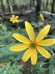 Helianthus decapetalus is a perennial forb known for its tall, erect stems and bright yellow flowers, commonly found in mesic woodlands and forests.