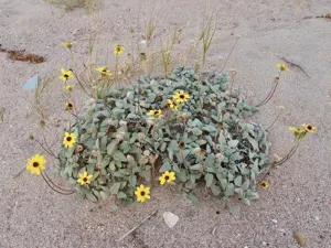 Helianthus niveus is a taprooted annual or perennial sunflower native to California, growing up to about 1 meter tall with yellow flowers and lance-shaped leaves.