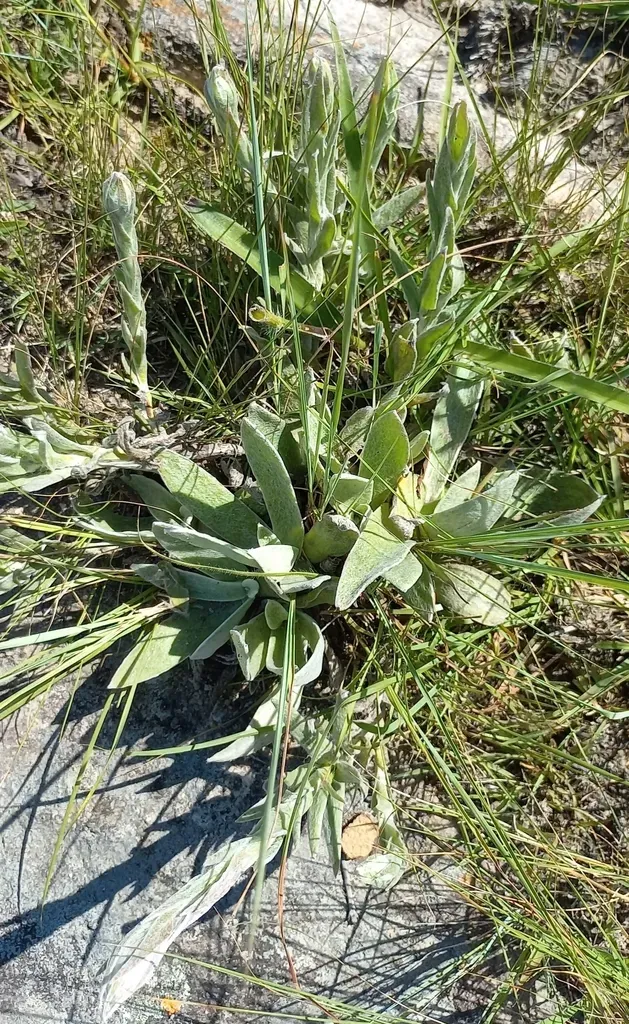 Helichrysum appendiculatum is a perennial shrub distinguished by its silvery-green foliage and bright, yellow, papery flowers that resemble small suns.