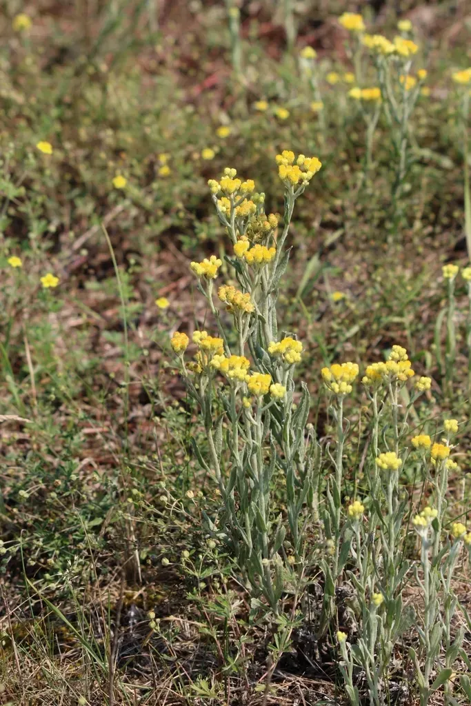 Helichrysum arenarium is a perennial herbaceous plant known for its yellow, everlasting flowers and woolly leaves.