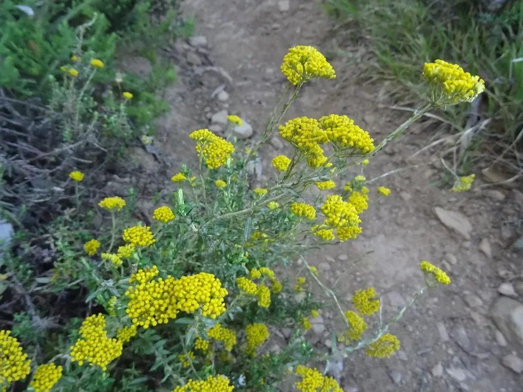 Helichrysum cymosum is a hardy, evergreen small shrub with silvery, woolly leaves and bright yellow flower clusters.