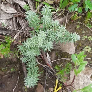 A compact or straggling subshrub native to South Africa, known for its white-felted branchlets and small silvery leaves.