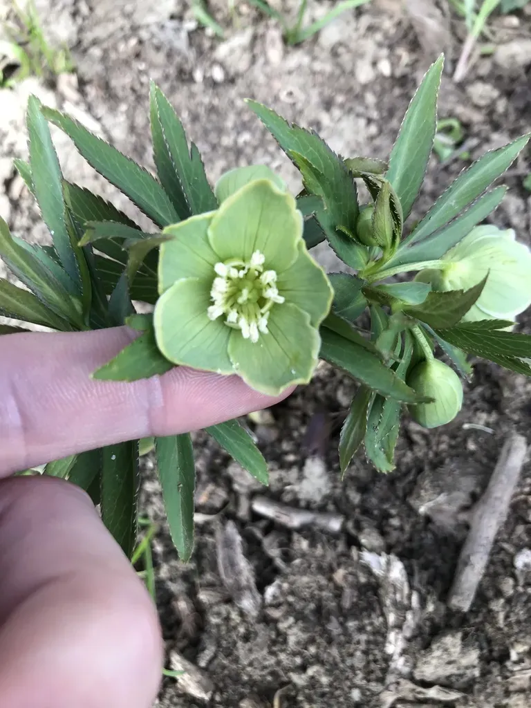 A deciduous perennial plant native to mountainous woods and thickets, known for its clusters of small green flowers appearing in late winter and early spring.