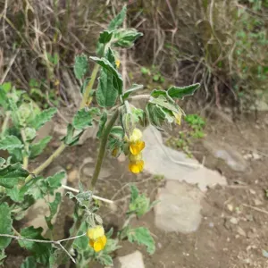 Hermannia althaeifolia is a subherbaceous annual or short-lived perennial plant native to South Africa, characterized by stellate hairs and gland-tipped hairs on its stems and leaves.