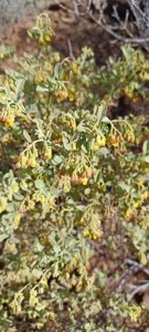 Hermannia holosericea is a small, resilient shrub with velvety, silver-grey foliage.