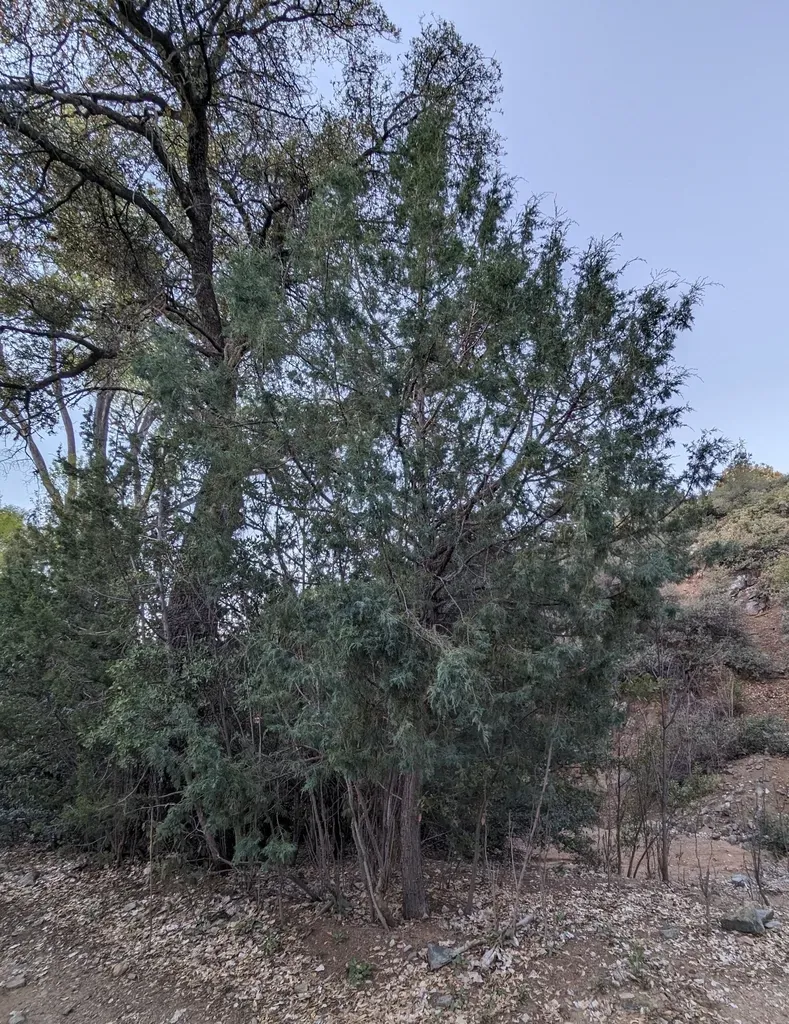 Arizona Smooth Bark Cypress (Hesperocyparis Glabra) is a perennial tree in the Cupressaceae family with easy care difficulty. It requires low watering and full sun light in USDA hardiness zones 7-10. This plant is safe for cats and dogs.