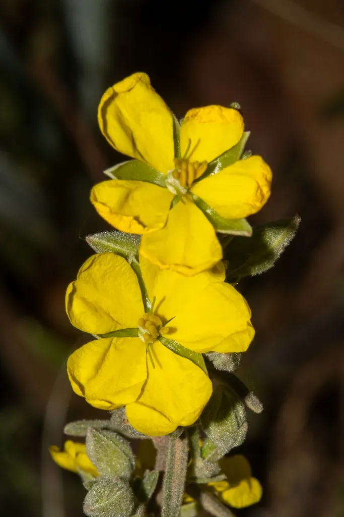 Hibbertia australis is an erect to spreading shrub endemic to south-eastern continental Australia with yellow flowers and downy stems.