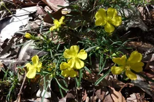 Showy Guinea Flower (Hibbertia Linearis) is a perennial shrub in the Dilleniaceae family with easy care difficulty. It requires moderate watering and full sun or partial shade light in USDA hardiness zones 9-11. This plant is safe for cats and dogs.