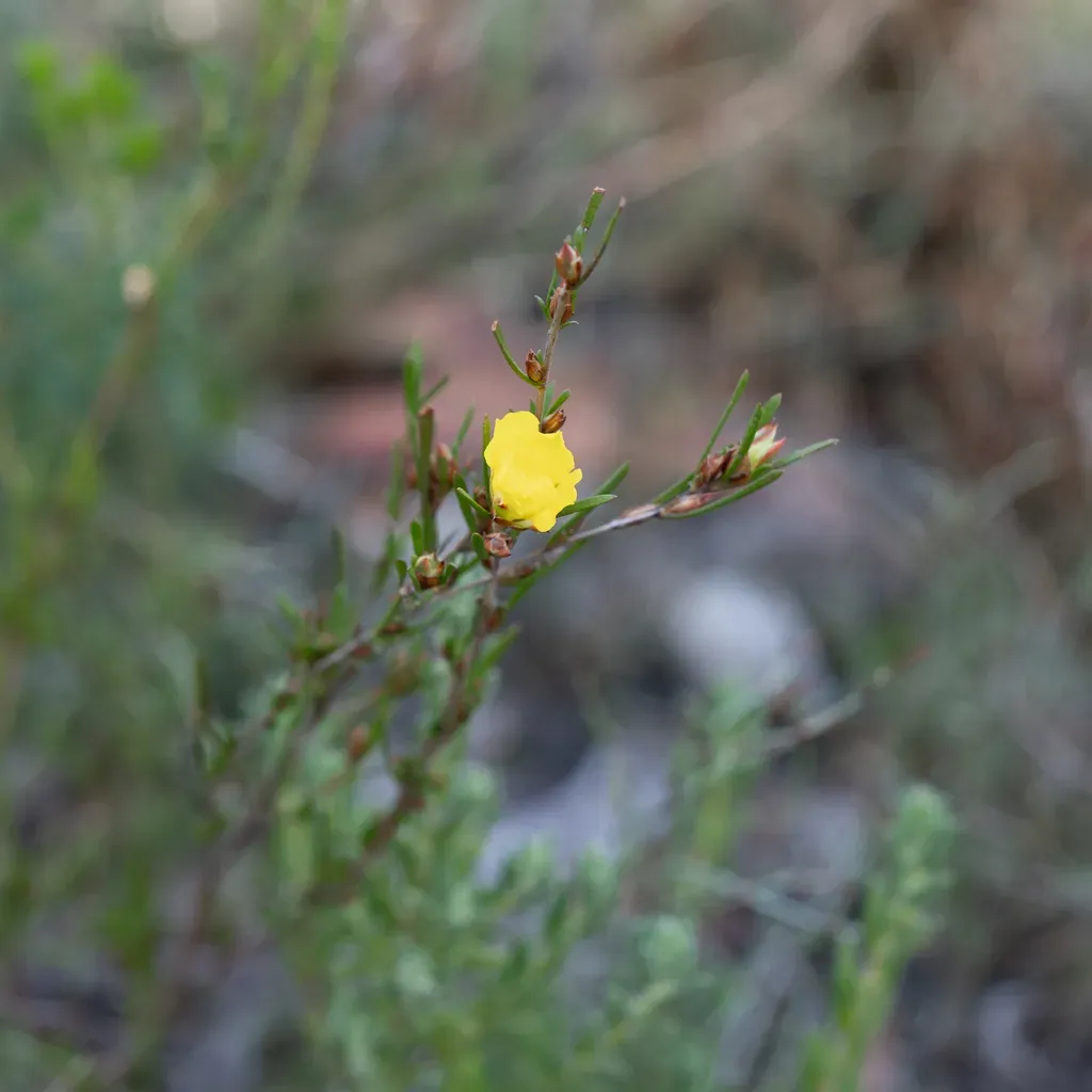 A slender, erect shrub native to parts of Australia, typically growing up to 1.5 meters tall with yellow flowers.