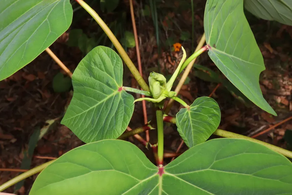 Bleeding Heart (Homalanthus Novoguineensis) is a plant in the Euphorbiaceae family with moderate care difficulty. It requires moderate watering and moderate light.