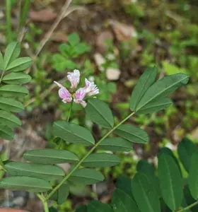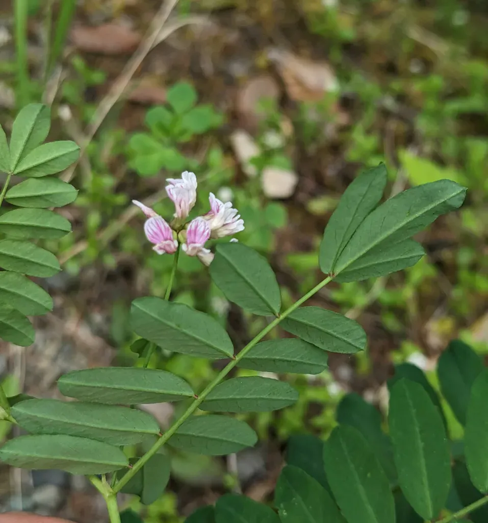 Hosackia rosea is a perennial herb native to California and western North America, characterized by robust stems and pinnate leaves with oval leaflets.