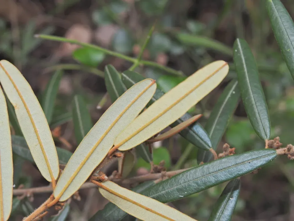 Hovea lorata is a shrub species endemic to eastern Australia, characterized by its lorate (strap-shaped) leaves and purple pea-like flowers.