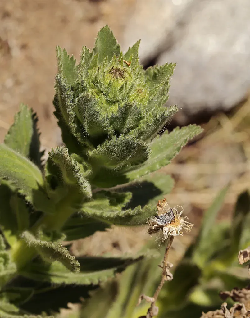 Hulsea heterochroma is an annual or perennial herb native to western North America, characterized by thick, leafy green stems and toothed leaves covered in glandular hairs.