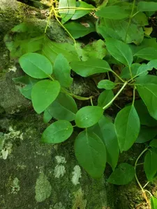 Hydrangea barbara is a deciduous, semi-evergreen woody vine native to the southeastern United States, known for its glossy dark green leaves and clusters of small, fluffy white flowers.