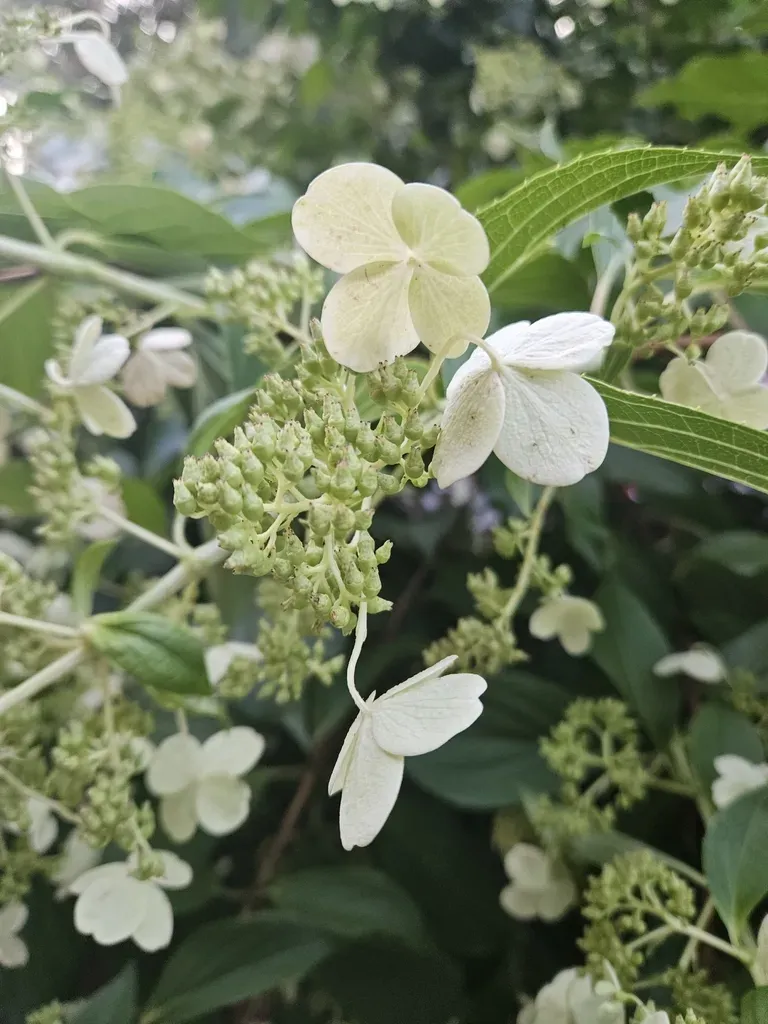 Hydrangea paniculata is a large, multi-stemmed, woody, deciduous shrub or small tree with large panicle-shaped flower clusters.