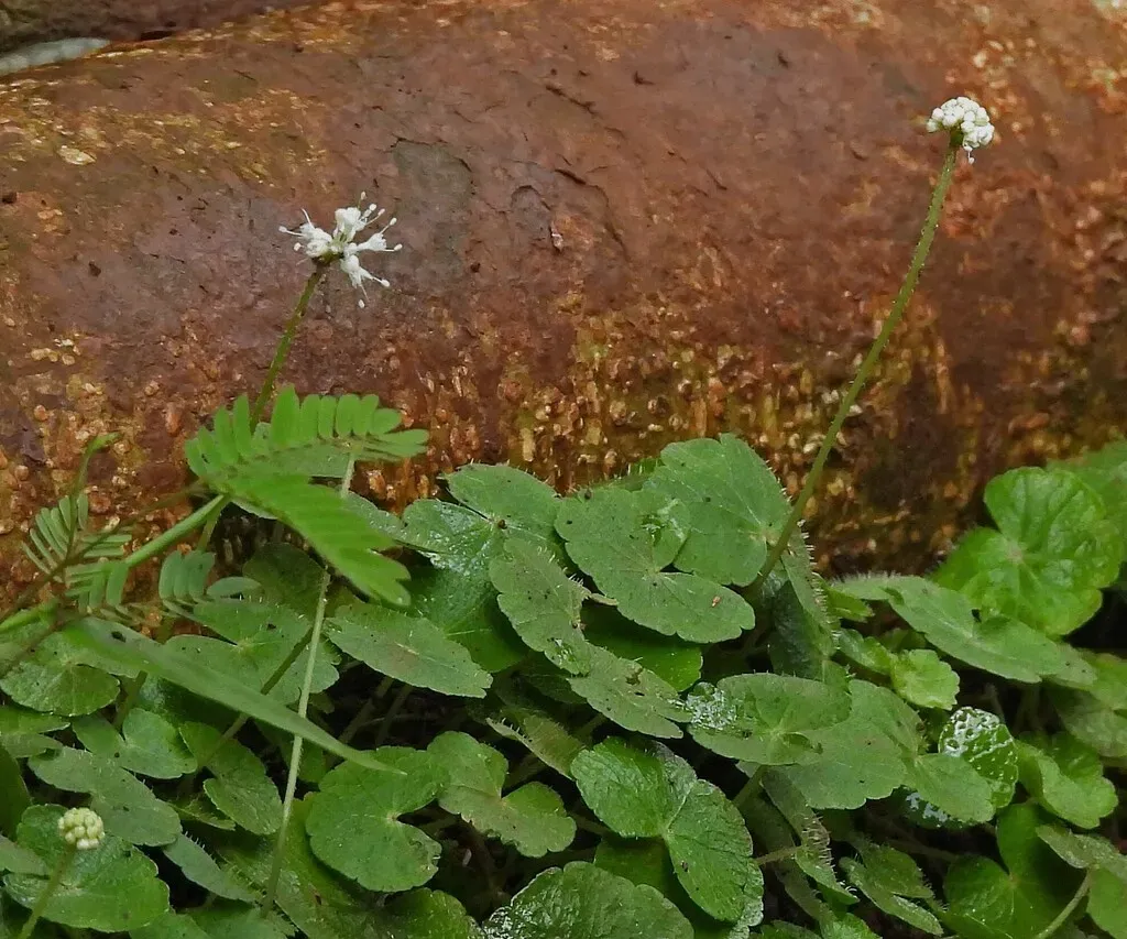 Hydrocotyle leucocephala is a fast-growing aquatic plant known for its round, heart-shaped leaves and trailing stems.