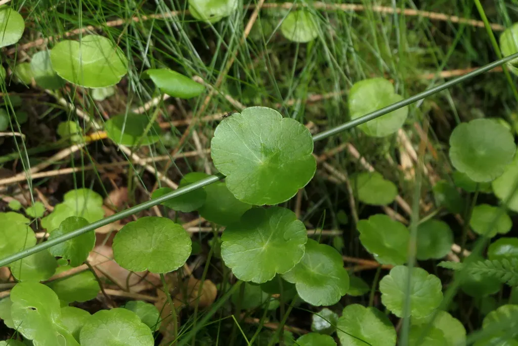 Hydrocotyle vulgaris is a small creeping aquatic perennial herb known for its round, kidney-shaped leaves and creeping habit.