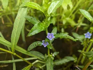Hydrolea uniflora is a herbaceous plant known commonly as Oneflower false fiddleleaf, typically growing up to about 2 feet tall with blue to purple flowers blooming in summer and fall.