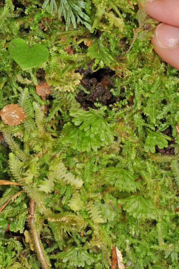 Shiny Film Liverwort (Hymenophyton Flabellatum) is a perennial moss in the Hymenophytaceae family with moderate care difficulty. It requires very high watering and full shade or dappled_shade light in USDA hardiness zones 7-11. This plant is safe for cats and dogs.