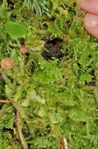 A dendroid thalloid liverwort with glossy, fan-shaped thalli.
