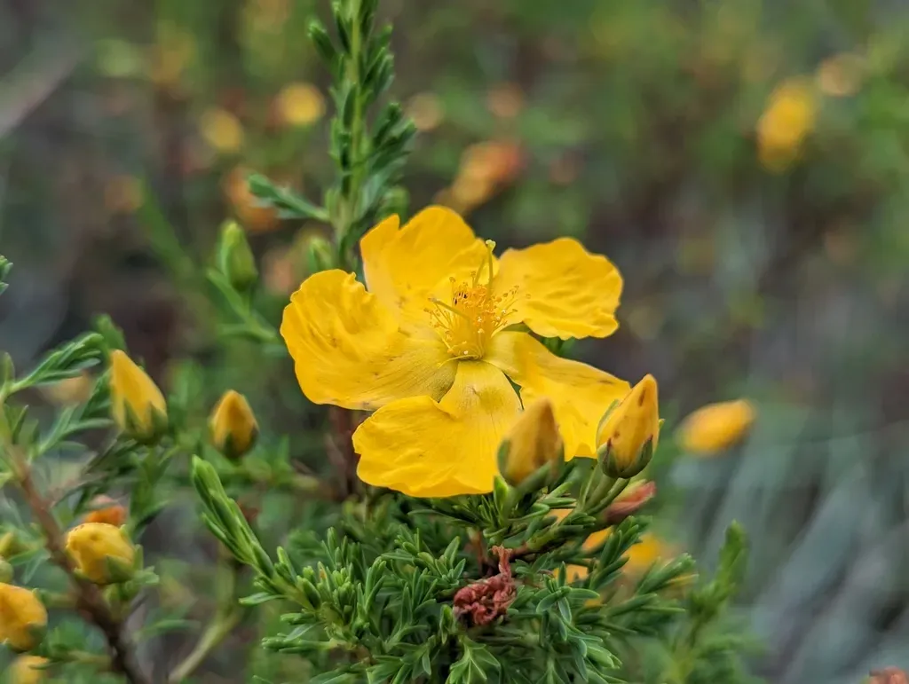 No Widely Recorded Common Names (Hypericum Laricifolium) is a perennial shrub in the Hypericaceae family with easy care difficulty. It requires moderate watering and full sun or partial shade light in USDA hardiness zones 9-11. This plant is safe for cats and dogs.