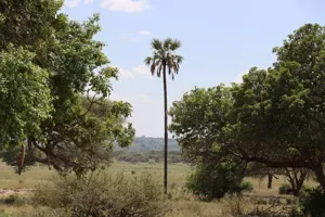 Hyphaene petersiana is a palm tree native to subtropical regions of south central Africa, known for its distinctive fan-shaped leaves and multi-purpose uses.