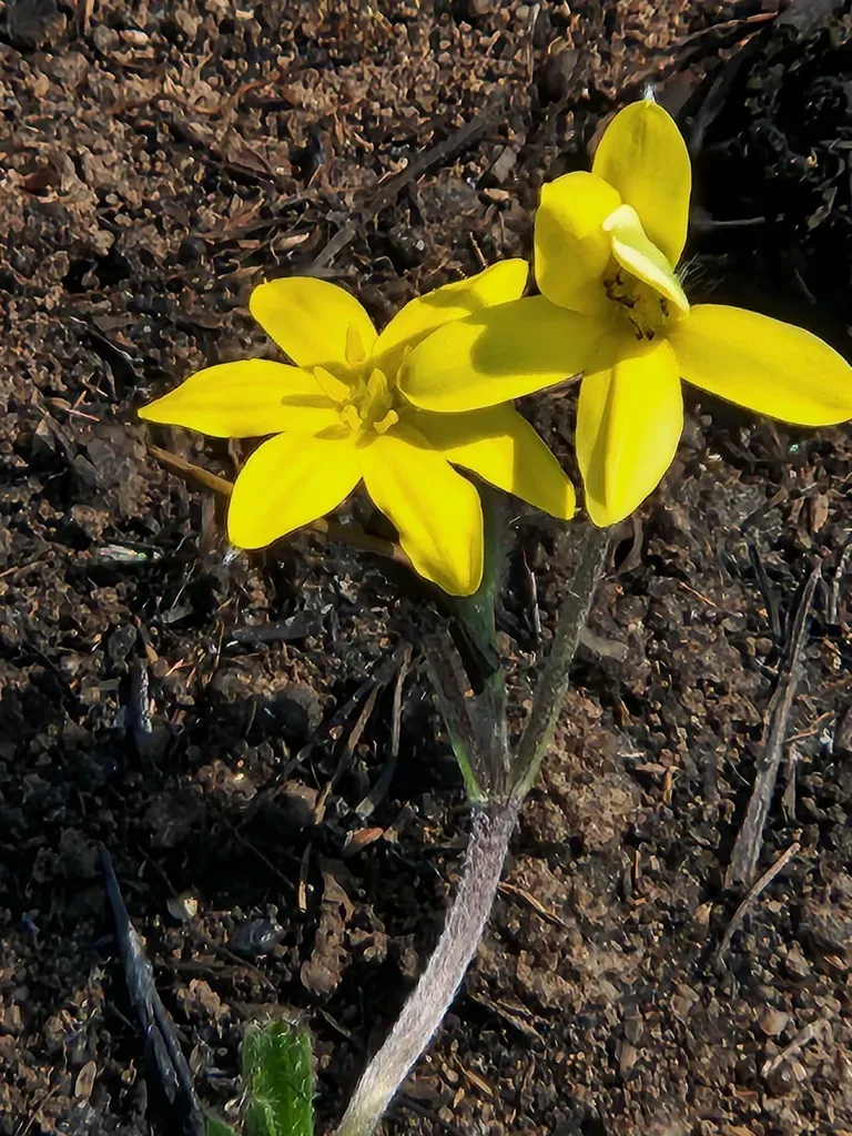 Hypoxis argentea is a slender, herbaceous perennial plant native to South Africa, known for its grass-like leaves and bright yellow star-shaped flowers.