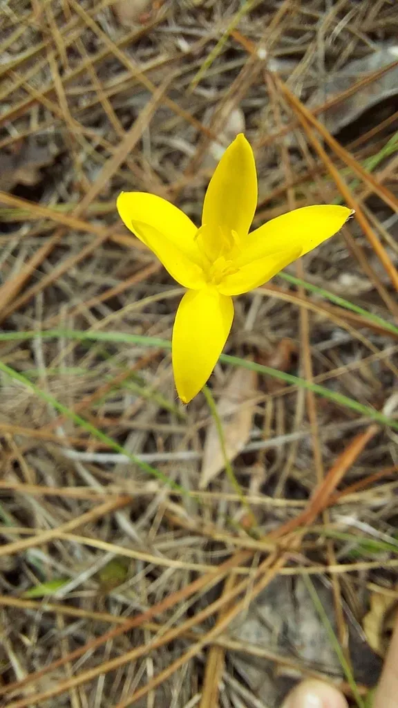 Hypoxis juncea is a perennial herbaceous plant known for its very narrow, thread-like leaves and yellow star-shaped flowers.