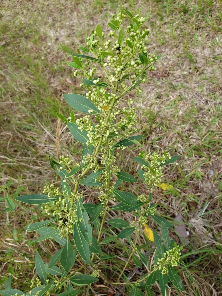 Ilex glabra, commonly known as Inkberry, is an evergreen holly shrub native to the eastern United States, known for its glossy dark green leaves and black berries.