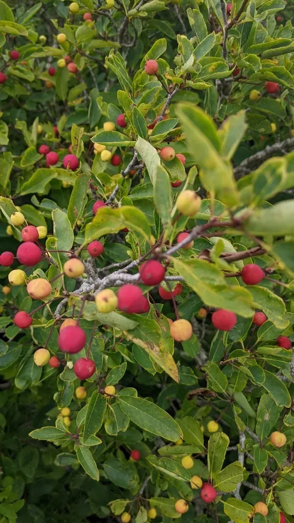 Ilex mucronata is a deciduous holly native to eastern North America, known for its bright green leaves, red berries, and striking yellow fall foliage.