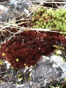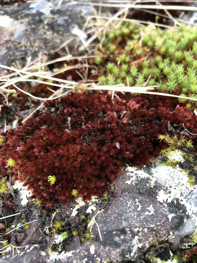 A moss species characterized by narrow, shiny-metallic red leaves, often found in boreal-temperate and alpine habitats.