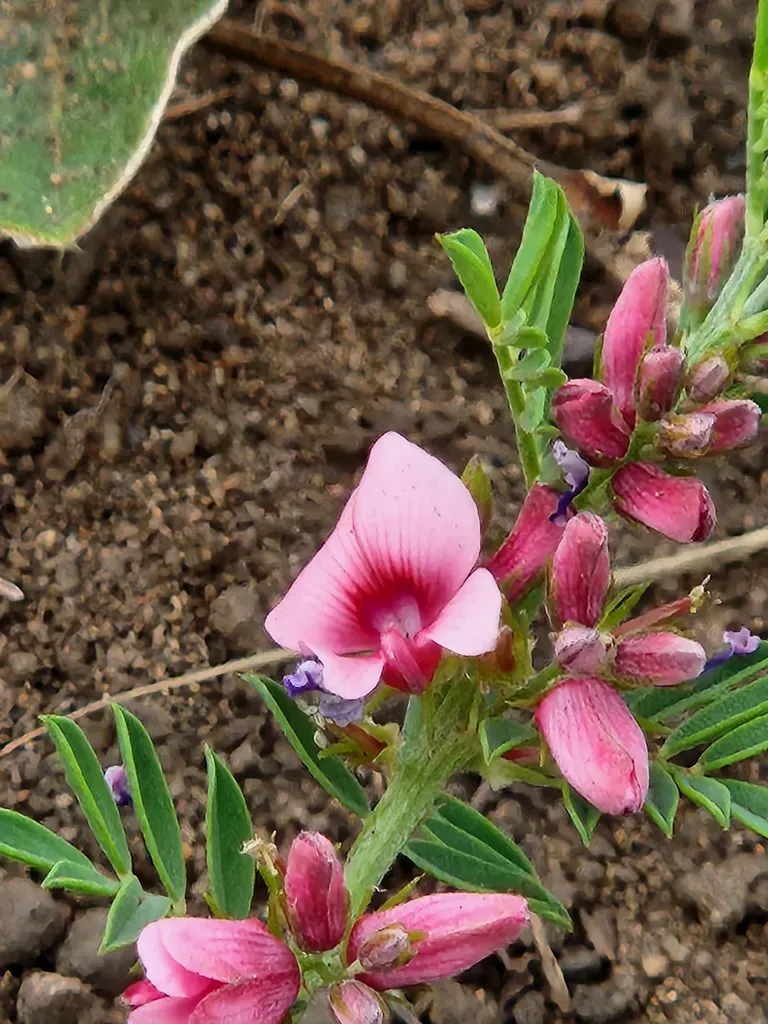 Indigofera hilaris is a perennial leguminous shrublet known for its bright blue to violet pea-like flowers, typically found in seasonally dry tropical regions.